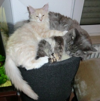 Churel ist am 09.12.2010 ausgezogen. Er behält seinen Namen wohnt jetzt mit einer anderen Maine Coon in Maintal. Wir wünschen den neuen Dosenöffnern und natürlich auch Minou viel Spaß!